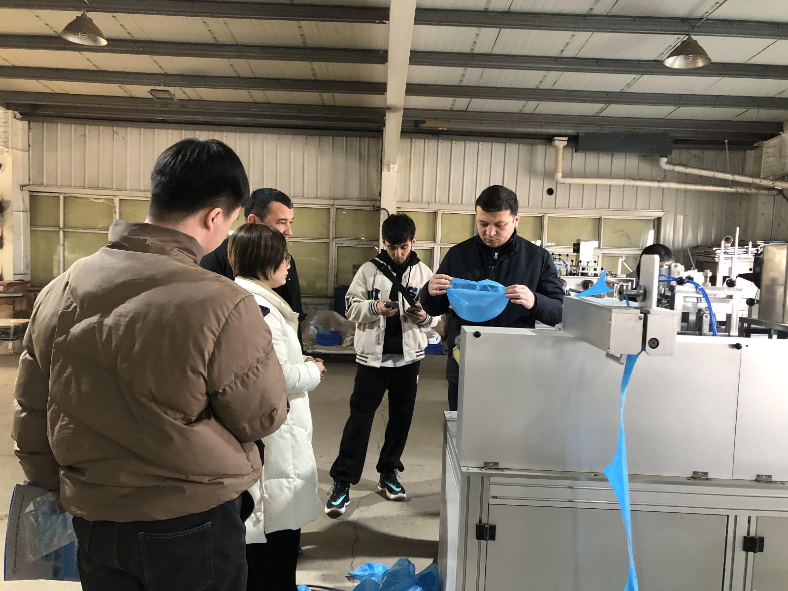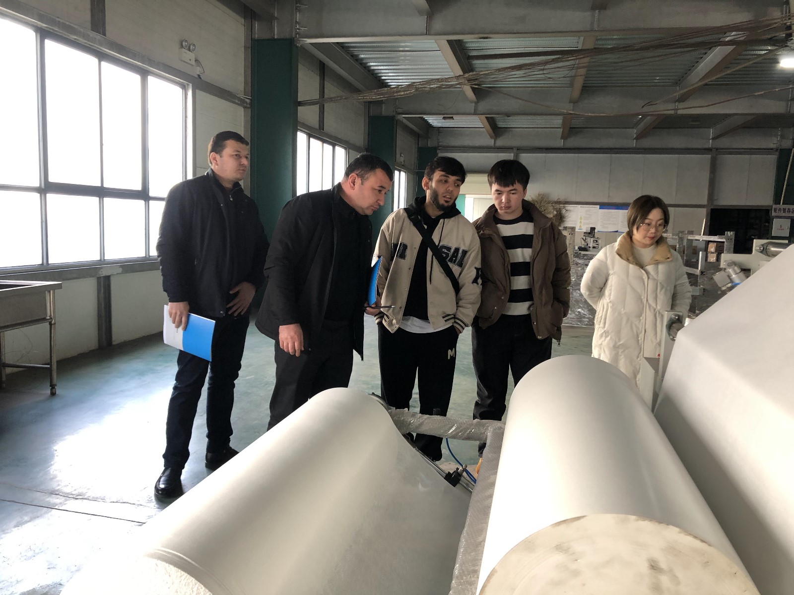 烏斯別克斯坦客戶一行對(duì)我公司邦恩進(jìn)行實(shí)地考察,對(duì)酒精棉片車間、包紙繃帶打卷機(jī)車間、手術(shù)帽車間和消毒柜現(xiàn)場進(jìn)行了參觀。